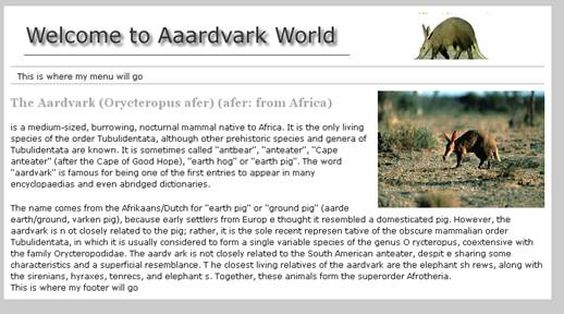 Time to remove the this is where the banner will go text and change the content to something to do with Aardvarks