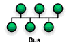 The bus on the diagram on the right is the horizontal line. This is often an upgraded connection, these days typically fibre optic cable.