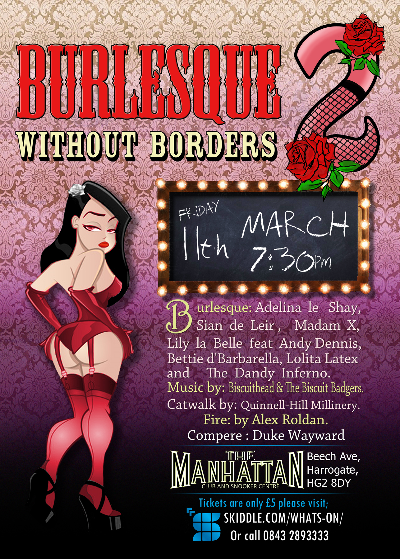 Friday 11 March 2011 - as promised Harrogate’s best ever Burlesque night. Burlesque Without Borders came to the ‘gate and the joint was rockin’. Over 200 people came along and went wild to the amazing performances of our stars. I think that the photos speak for the night but here are a few quotes from our audience: